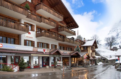Residence "Chalet Abendrot apARTments". In the centre. In the house: reception, lounge, WiFi, table tennis, billiard table, playroom, lift, storage room for skis, central heating system. Pre-arrival grocery service. In Winter: please take snow chains. Communal covered parking (extra), public parking 200 m extra. Shop 400 m, restaurant 10 m, bus stop "Firstbahn" 80 m, railway station "Grindelwald Dorf" 800 m, outdoor swimming pool 2.5 km, indoor swimming pool 600 m. Golf course (9 hole) 2 km, tennis 1 km, minigolf 400 m, sports centre 600 m, mountain railway 800 m, gondola lift 80 m, ski rental 50 m, ski bus stop 80 m, cross country ski track 1 km, children's playground 600 m. Well-known lakes can easily be reached: Thuner-/Brienzersee 18 km. Please note: The owner does not accept any groups. Ski bus (free of charge). Neighbourhood highly sensitive to noise. Quietness and good behaviour expected. Indian restaurant "Golden India" in the house. The apartment house, built in chalet style, offers a youth room, a children's playroom, a garage (parking space CHF 98.00/week, reservation on arrival). Modern-rustic and cozy apartments, most with a spacious balcony or terrace and a wonderful view of the mountains. Please note: limited number of garage spaces. Pre-reservation not possible. Garage height and width: 12 parking spaces 2.09x2.06 m, 15 parking spaces 1.65x2.06 m. Max. 2000 kg.