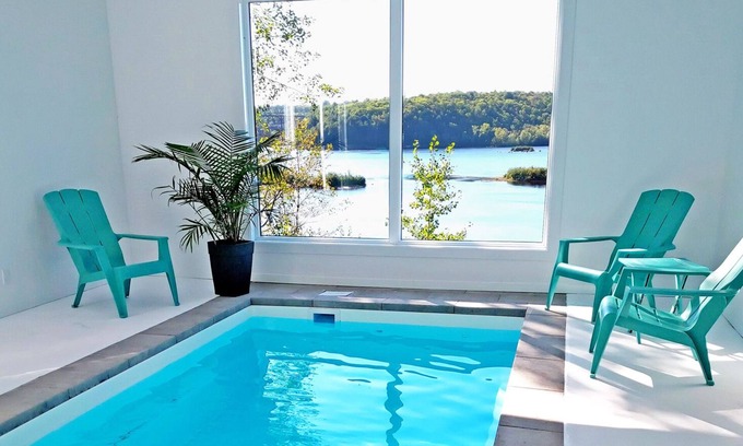 Chalet Avec Piscine Intérieure Face au St Maurice, Dans la Baie de Shawinigan | Ski Chalet in Saint-Boniface