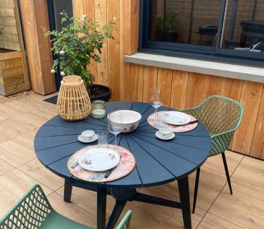 Chalet bain nordique - Calm & relax is a recently renovated apartment in Bellême where guests can make the most of the garden and barbecue facilities. Guests are welcome to go for a swim in the private pool. The accommodation features a hot tub, free Wifi throughout the property, and a 24-hour front desk. Featuring a terrace with pool views, this apartment also comes with a cable flat-screen TV, a well-equipped kitchen with a dishwasher, an oven, and a microwave, as well as 1 bathroom with a walk-in shower and bathrobes. For added privacy, the accommodation has a private entrance and soundproofing. A bicycle rental service is available at the apartment, while hiking and walking tours can be enjoyed nearby. Halle au Blé is 25 miles from Chalet bain nordique - Calm & relax, while Belleme Golf Course is a 13-minute walk from the property. Deauville - Normandie Airport is 85 miles away.