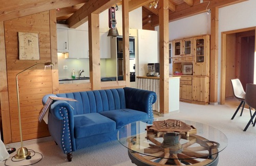 "Chalet Bienli Oben", 3-room apartment on the top floor, south facing position. Object suitable for 4 adults + 2 children. Partly with sloping ceilings, partly renovated in 2024, cosy and wooden furniture furnishings: open living/sleeping room with sloping ceilings with 1 double bed (160 cm, length 200 cm), open-hearth fireplace (only for decoration), dining table and cable TV. Exit to the balcony, south facing position. 1 room with sloping ceilings with 1 double bed (2 x 80 cm, length 200 cm). Exit to the balcony. 1 small children's room with sloping ceilings with 2 beds (90 cm, length 200 cm). Open kitchen (oven, dishwasher, 4 ceramic glass hob hotplates, toaster, kettle, microwave, electric coffee machine, raclette grill, fondue Set (chinoise, cheese)). Bath/WC. Carpet. Large balcony, south facing position. Balcony furniture. Marvellous panoramic view of the mountains. Facilities: hair dryer. Internet (WiFi, free). Parking at 50 m. Please note: non-smokers only. Fire extinguisher.