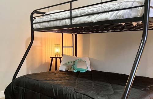 As you settle into the place, you'll find a fireplace, air conditioning, and a desk. Enjoy the free WiFi, TV, and video games. Bathroom amenities include a hair dryer, towels, and toilet paper. Prepare a home-cooked meal in the kitchen, complete with an oven, a stovetop, and a refrigerator, as well as a coffee maker, an electric kettle, and a microwave. And you can even pack a bit lighter because there's a washer and dryer. Other amenities include bed sheets, heating, a computer monitor, and a desk chair.