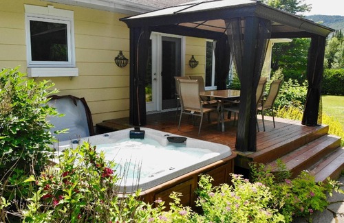 At the foot of a stone cape and bordered by the Bras-du-Nord River, this chalet offers you an absolutely magnificent out-of-the-ordinary decor. In the heart of nature, but ten minutes from amenities, this chalet is ideal for a peaceful stay. The chalet is located between the Cantin and Shannahan welcome centers of the Vallée Bras du Nord, THE outdoor destination in Quebec for mountain biking, hiking, canoeing/kayak, snowshoeing and much more.