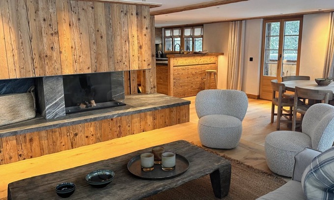 Wake up to the soothing sounds of the nearby river, as this chalet offers a picturesque setting that seamlessly blends nature and luxury. With 4 bedrooms and 4 bathrooms, our chalet provides ample space for families and groups, ensuring everyone can unwind in their own private haven. The chalet is designed with a perfect blend of traditional Alpine charm and modern comforts, creating a warm and inviting atmosphere.