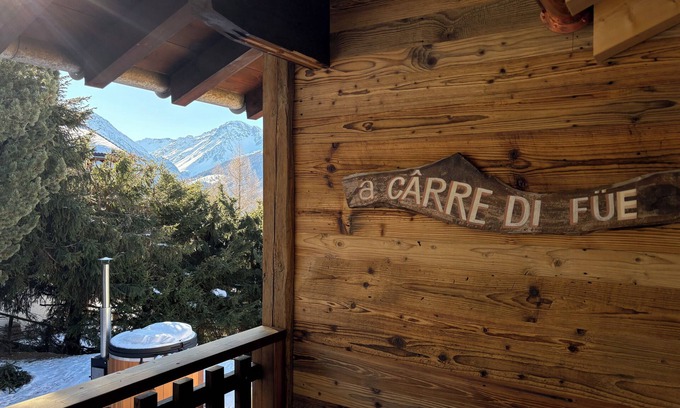 Chalet CarreDiFue | 4bed | 180° view | Nordic bath is located in St. Luc. Chalet CarreDiFue | 4bed | 180° view | Nordic bath provides accommodation, featuring Balcony/Terrace, Bedding/Linens, Fireplace/Heating, among other amenities. This Ski Chalet features Balcony/Terrace, Bedding/Linens, Fireplace/Heating, to make your stay a comfortable one.