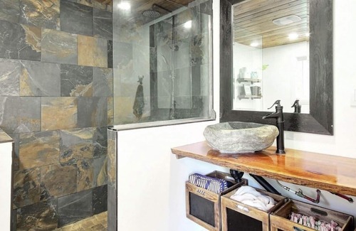 This 4-bedroom, 2-bathroom rental features a fireplace and air conditioning. Bathroom amenities include a hair dryer and towels. And because there's a dryer, you can go a bit lighter on your packing.