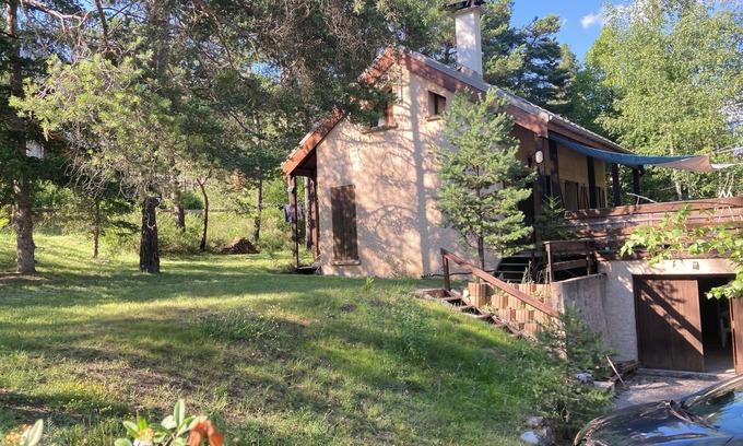 Chalet of 6/8 places (80 m2) on 800 m2 of land with large terrace of 30 m2 facing south, located in a charming village of the Alpes de Haute-Provence.