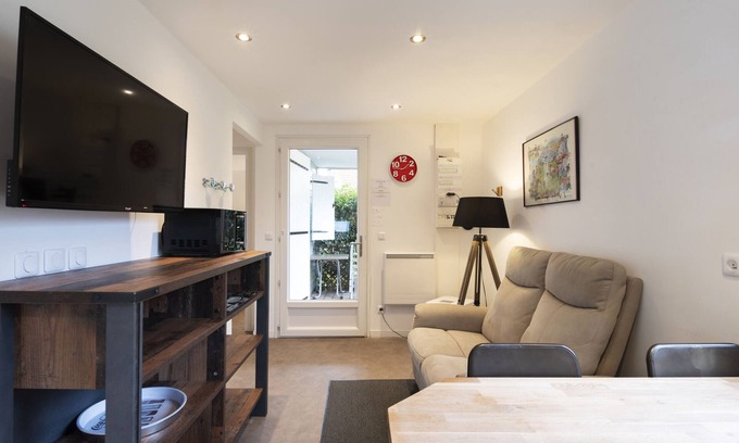 The Chalet de Romy is located in a very pretty area of Vittel. It is located in the garden of our Residence, just a few steps from the large Vittel Thermal Park. It has two separate bedrooms with a Queensize bed, a living room - dining room, a fully equipped and open kitchen, a shower room and a separate toilet. It has an independent terrace and air conditioning (in summer). Perfect for a couple, two couples or a family, it is also ideal for teleworking. Relaxation assured (free and unlimited public parking at the bottom of the building)