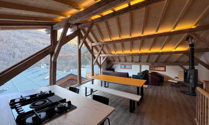 Chalet Des Legendes offers accommodations in La Combe, 30 miles from Col de la Madeleine. Guests staying at this chalet have access to a fully equipped kitchen. Free Wifi is available throughout the property and Halle Olympique d'Albertville is 26 miles away. The spacious chalet includes 3 bedrooms and a living room with a flat-screen TV. The accommodation has a fireplace. Chambéry-Savoie Airport is 62 miles away.