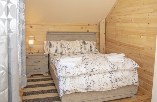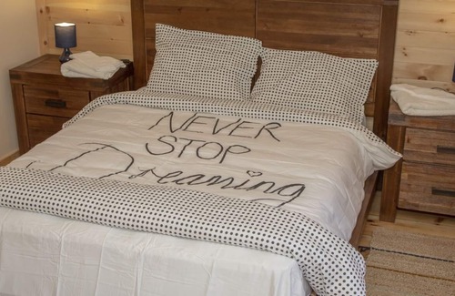 Amenez toute la famille dans cet endroit génial avec beaucoup d'espace pour s'amuser. Chalet de style scandinave où le bois est à l'honneur. Sauna actuellement hors-service. À proximité de toutes les activités.