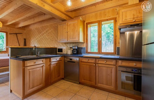 Independent chalet on 3 levels. On the ground floor: entrance, large garage, laundry room. On the 1st floor: entrance, living room-kitchen with access to terrace, balcony and grounds, separate WC, 1 bedroom (1 double bed 140x190 cm), bathroom (shower). On the 2nd floor: 2 bedrooms (1 double bed 140x190 cm / 2 single beds 90x190 + 2 single bunk beds 90x190 cm), mezzanine (1 sofa bed for 2 people 140x190 cm), bathroom (shower spa + WC). Outdoor sauna with private access. Private parking (3 cars). Plancha/grill. Gravel courtyard. Looking for a base camp for a stay in the great outdoors in Albiez? The Chalet du Pré au Cerf brings together many advantages: in a residential area on the edge of the forest, offering a beautiful wooden terrace, a large garage to park bicycles and motorbikes, 3 bedrooms and a large mezzanine, a natural ground to stretch your legs and tobogganing... All 4.5 km from the Albiez le Vieux ski area.