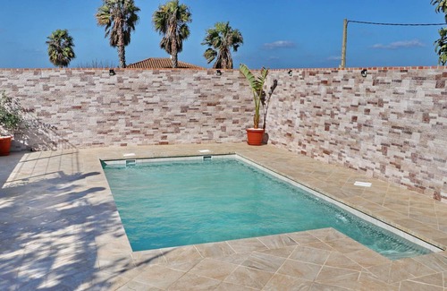 The house has an outdoor area with pool, porch, barbecue and private parking. It has two bedrooms, one with a double bed and the other with two single beds in a trundle bed, a bathroom with a shower, a living room and a fully equipped kitchen with everything you need in kitchenware, washing machine, microwave, iron, blender, toaster, sandwich maker. , refrigerator... etc. The house has mosquito nets on all windows and fans.
