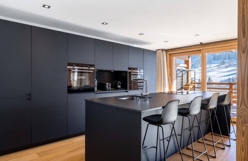 You will appreciate its monochrome design and the combination of stone and wood which perfectly combine Savoyard tradition and modernity.