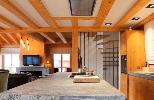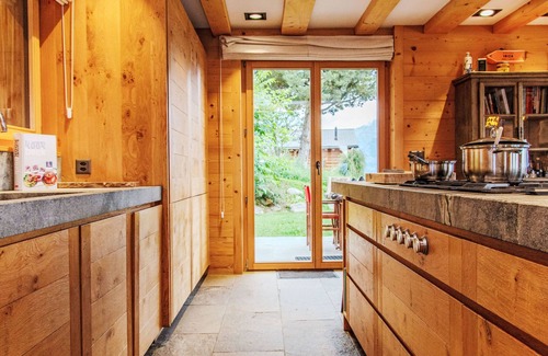 "Chalet Gerritsen", 6-room chalet 280 m2 on 3 levels, north-west facing position. Spacious and bright, modern and luxurious furnishings: entrance hall with separate WC. Large living/dining room with open-hearth fireplace, cable TV, hi-fi system and Home cinema. Exit to the terrace, north facing position and west facing position. Large, open kitchen (oven, dishwasher, 5 gas rings, toaster, kettle, microwave, freezer, electric coffee machine, raclette grill, cooking island, fondue Set (cheese)). Exit to the terrace. Underfloor heating. On the lower ground floor: 1 room with 1 french bed (180 cm, length 200 cm), bath/bidet/WC and cable TV. Exit to the garden. 1 room with 1 x 2 bunk beds (90 cm, length 200 cm), cable TV. Exit to the garden. 1 room with 1 french bed (180 cm, length 200 cm), shower/WC. Exit to the garden. Shower/WC, Sauna. Upper floor: open office. 1 room with 1 french bed (180 cm, length 200 cm), bath/shower/WC, double hand-basin and cable TV. Exit to the balcony, north facing position and south facing position. Parquet floors. Large terrace, north facing position and west facing position, large garden. Terrace furniture, barbecue, deck chairs (2). Marvellous view of the mountains and the valley. Facilities: washing machine, dryer, children's high chair, baby cot, hair dryer. Internet (WiFi, free). Parking (2 cars), in winter at 50 m. Please note: non-smokers only. Maximum 1 pet/ dog allowed. 2 personal ski lockers available at the departure of the gondola.