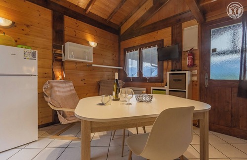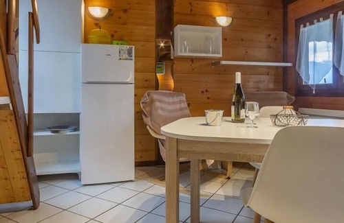 Individual Bungalow Chalet situated on a former campsite. Studio including a fitted kitchen with hob and oven-microwave. Corner night with 1 bed 2 people (rental of sheets) separated by a curtain. Mezzanine with 2 beds 1 person. Bathroom (shower) with toilet. Private terrace equipped with garden furniture + barbecue and sun loungers. WIFI connexion. Common washing machine. Private parking. Functional Bungalow Chalet, ideal for a couple in search of original stay. Good comfort. Immediate environment of quality in the heart of the vineyards of Savoie and on the foothills of the regional natural park of the Bauges massif. Territory offering many hiking and cyclo possibilities. Restaurant at 3 km, leisure park and artificial lake of Carouge only 1,5 km away. Cultural heritage (Castle of Miolans) at 4 km. Albertville at 23 km.