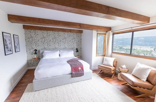 Chalet Heimann - Edelweiss Village is located in Golden, just 7.4 miles from Golden Golf & Country Club and 9.2 miles from Northern Lights Wildlife Wolf Centre. This property offers access to a balcony and free private parking. The air-conditioned chalet consists of 1 bedroom, a living room, a fully equipped kitchenette with a dishwasher and a kettle, and 1 bathroom with an a bath or shower and bathrobes. Towels and bed linen are provided in the chalet. There's also a seating area and a fireplace.