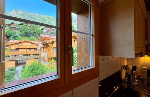 Important travel information: Wengen is a car-free mountain village with no road access. Guests must park in the valley below in Lauterbrunnen and take a scenic 12-minute train ride up to Wengen. It's all part of the magic of arriving in the mountains!