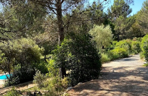 An air-conditioned chalet for 4 people with all modern conveniences—perfect for a peaceful holiday in the heart of nature! The chalet features a swimming pool, pétanque area, barbecue, swing, and plenty of sunshine. It is located 5 km from a picturesque Minervois village, between the sea and the mountains, just an hour from Narbonne and Carcassonne. Relax under the pine trees with a stunning, unobstructed view of the mountains. A pétanque area and parking spaces are also available