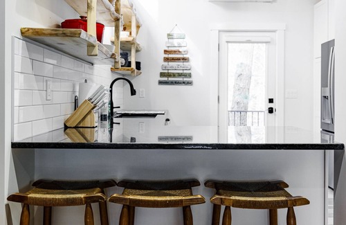 This recently and fully renovated space has everything you’re looking for while you’re on vacation. The chalet sleeps up to nine people in comfortable beds across the three bedrooms and living spaces. The kitchen is well appointed with stainless-steel appliances, and has great sight lines to the living spaces, so you won’t feel removed from the rest of the group. The couches are so comfortable and perfect for a movie night or afternoon nap. Two separate living spaces gives you space to spread out while still feeling together.