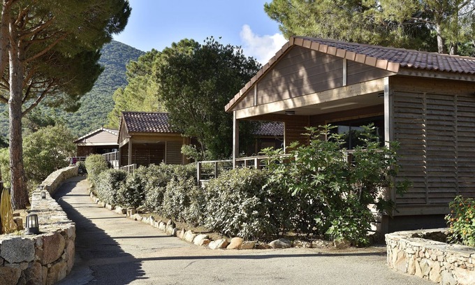 A green oasis just a few meters from the beach! In harmony with the Corsican nature, in a 6-hectare wooded park and a short walk from the beautiful sandy beaches of Portigliolo and the coves of the Belédère nature reserve, U Livanti offers an incomparable location for your holidays. The chalets are comfortably furnished and have a covered terrace and air conditioning. The holiday complex is located on the Belvédère-Campomoro road in the town of Propriano. In a few minutes you can reach the villages of Propriano, Sartène, Campomoro, Olmeto and Porto-Pollo. Discover the beaches and nature in the area, the wide range of water sports, visit the largest Genoese tower in Corsica in Campomoro or explore the port city of Propriano or the city of Sartène.