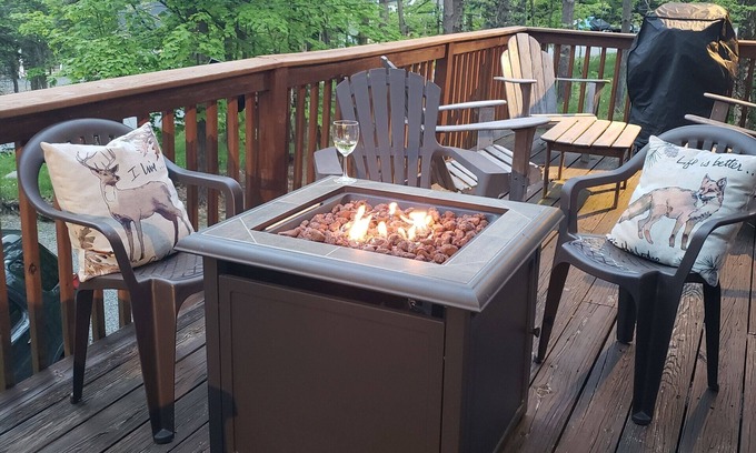Relax with the whole family in this peaceful Chalet. This home is nestled within the Hideout gated community, just two hours from NYC and Philadelphia. Enjoy the front deck with attached side screened room for those rainy days or outdoor dining away from pesky mosquitoes. Use the gas BBQ grill and gas fire pit for your outdoor enjoyment. Guests will have access to 5 lakes, 2 beaches, kayak and paddle boat rentals, a private 9-hole golf course, 2 outdoor heated community pools, plus a kiddie pool, as well as, volleyball/pickleball courts, playgrounds, hiking trail, indoor recreation center with a fitness center, indoor tennis and a game room, mini golf, art center, clubhouse restaurant near the golf course, and tiki bar at the main beach.