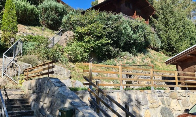 This cozy chalet in Vex, Switzerland, offers a peaceful retreat for families, accommodating up to 8 guests. It features a charming living room with a decorative fireplace, perfect for relaxing after a day outdoors. The open-plan kitchen is fully equipped with modern appliances to meet your culinary needs. The bedrooms include a double bed, two single beds, and a single bed, with a second living room offering a sofa bed and additional sleeping space. For added comfort, the chalet has a sauna, washing machine, and dryer on the ground floor. Enjoy mountain views from the balcony and a lovely garden area for outdoor relaxation. Located between Sion and the Veysonnaz/Thyon 2000 mountains, Chalet Porkka is an ideal base for both skiing and hiking. The chalet overlooks the Grande-Dixence dam and provides easy access to local cable cars, with the Ours piste just 7.8 km away and the Les Masses chairlift 5.8 km away. Shops and amenities are only 1.7 km from the property, making it convenient for your stay. Whether you're hitting the slopes or exploring the surrounding nature, this location offers both tranquility and adventure in equal measure. The chalet’s exterior features a balcony with beautiful valley views, and there's a dedicated parking space just 200 meters away. Additional amenities include a sauna for ultimate relaxation and a fully equipped kitchen for preparing your favorite meals. Please note, pets are not accepted, and access is via a small path with stairs. For a more convenient stay, optional services like bed linen & towels, beds made upon arrival, final cleaning, and more are available at an additional charge.