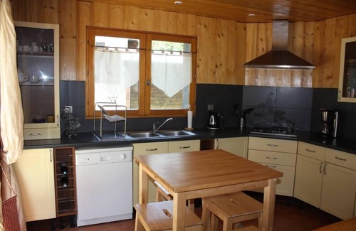 Beautiful wooden chalet / stone 140 m² completely renovated in 2006 located in the Alps, underfloor heating, comprising on the ground floor 1 living / dining room / kitchen with integrated bar of 65m², WiFi internet access, 4 bedrooms, 2 bathrooms, 1 separate toilet + 1 in the bathroom on the first floor, private parking for two cars, garden. Sheets and taxes included in the price.