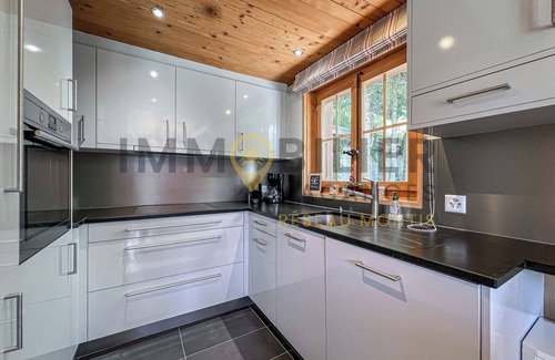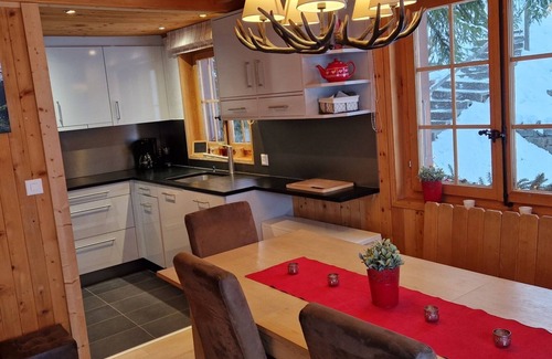 Chalet individuel de 2 étages pour 9 personnes d'une surface estimée à 100m2. Le chalet se situe sur un grand terrain plat avec accès direct du séjour au très beau jardin. Ce dernier est équipé de mobilier de jardin et d'un grill extérieur. Situé à l'entrée du village, bénéficiant d'un ensoleillement optimal et d'une vue fantastique. Au rez-de-chaussée : Hall d'entrée avec rangement, vestiaire, séjour avec cheminée (bois non fourni. En vente au supermarché du village), table à manger avec banc d'angle. Cuisine équipée avec lave-vaisselle. 1 chambre avec 2 lits individuels, salle de bain avec baignoire, lavabo, WC, 1 WC séparé. A l'étage : 2 chambres à 2 lits, 1 chambre à 3 lits et lavabo, 1 salle de bain avec douche et WC. Animaux non admis, connexion internet, garage fermé (hauteur 2,05m) à proximité. Animaux non admis. -- -- Final Cleaning: Final cleaning is included in the rental price -- -- Available Kitchen Towels: Bed linen, bath and kitchen towels (if you wish) : Chf 45.00 per person -- -- Available Bath Towels: Bed linen, bath and kitchen towels (if you wish) : Chf 45.00 per person -- -- Bedsheets: -- Bed linen, bath and kitchen towels (if you wish) : Chf 45.00 per person -- -- Parking: as per description -- -- Caution: CHF 300.00 -- -- Cancellation Insurance: We recommend to subscribe a cancellation fee insurance -- -- Administrative Costs: Booking fees : Chf 50.00 -- -- Pets : as per description -- -- Tourist Tax: As per contract --