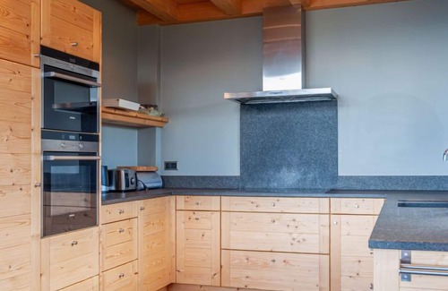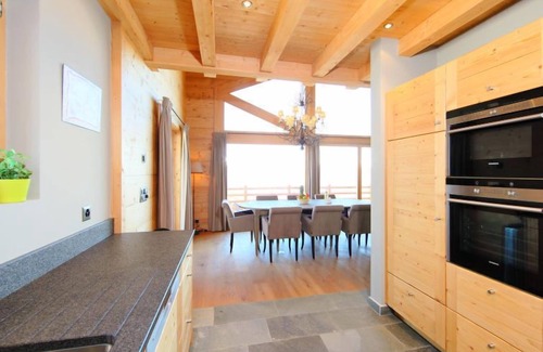 "Chalet Jadi", 5-room chalet 214 m2 on 3 levels. Comfortable and tasteful furnishings: large living/dining room with open-hearth fireplace and cable TV. Open kitchen (oven, dishwasher, 5 induction hot plates, toaster, kettle, microwave, electric coffee machine, Capsules for coffee machine (nespresso) extra, raclette grill, fondue Set (cheese)). Sep. WC. Heating. On the lower ground floor: 1 room with 1 french bed (160 cm, length 200 cm). 1 room with 1 french bed (160 cm, length 200 cm). 1 room with 2 beds (90 cm, length 190 cm). Bath/WC, shower, sep. WC, double hand-basin, Sauna. Upper floor: open large gallery with 1 sofabed (160 cm, length 200 cm). 1 room with 2 beds (90 cm, length 190 cm), hand-basin and TV. Balcony, north facing position, terrace, west facing position. Terrace furniture, barbecue. Very beautiful panoramic view of the mountains and the valley. Facilities: washing machine, dryer, children's high chair, baby cot, hair dryer. Internet (WiFi, free). Parking (2 cars). Please note: non-smoking house. Instead of an enclosed bedroom, some sleeping areas are located in an open-plan area (gallery, alcove, etc.).
