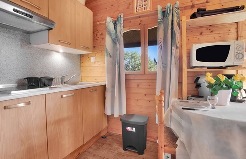 Located in Roquebrune-sur-Argens, this charming 20 sqm wooden chalet welcomes up to 2 guests. You will find 1 bedroom and 1 bathroom, along with a private well-equipped kitchen. Amenities include Wi-Fi suitable for video calls, air conditioning, TV, and a washing machine to enhance your stay.