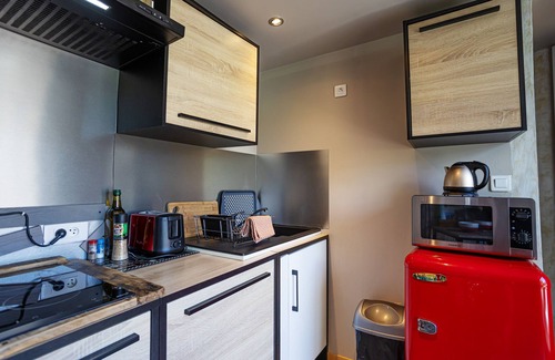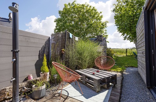 In Monterblanc, on the outskirts of Vannes, we offer you this charming 20 m² cocooning studio with jacuzzi in summer and Nordic bath from autumn to spring, which can accommodate up to 2 travelers. It comprises a living room with a bedroom separated by a screen, a fully-equipped kitchen, a bathroom (with shower) and a 70 m² garden.