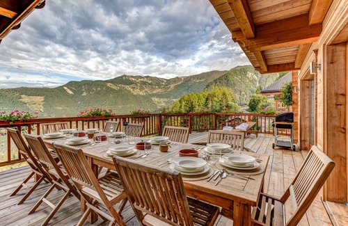 HighlightsThis luxury five-bedroom, five-bathroom chalet with jacuzzi is a rare treat in La Tzoumaz – ski-in and ski-out access, and an easy walk to the town centre! From the moment the automatic garage door opens to allow you into the snow-free underground parking, everything has been designed with skiers in mind: the parking is linked first to the chalet level and then to the piste by a 70m shuttle cabin on rails that easily climbs the near-vertical mountainside, so that you don’t have to! This is what makes Chalet La Couronne ski-in ski-out. No more struggling onto a ski-bus with arms full of children’s skis and poles, and no need to walk a long way in your ski-boots. There’s also no need to clear snow from your car in the mornings as you can just park it indoors and forget about it until it’s time to go home. In fact, you really don’t need a car if you’re staying here in the winter. Due to its elevated position, Chalet La Couronne benefits from fantastic views across the valley and to the mountains up to 20km away. The large windows of the open living / dining area were specially designed to make the most of this ever-changing vista.