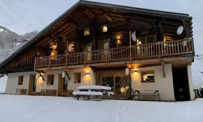 Individual chalet on 3 levels. Private courtyard and private unfenced land. Access by a sloping road suitable for vehicles cleared of snow in winter and parking in front of the gîte. On the ground floor: carport, entrance hall, living room-kitchen giving access to the land and the gravel terrace, pantry, laundry room, shower room (shower + wc), 2 bedrooms (1 double bed in 160x200 cm / 1 double bed 140x190 cm + 1 single bed 90x190 cm + 1 baby bed 60x120 cm), bathroom (bathtub + wc). On the 1st floor: TV/relaxation room, 5 bedrooms (1 double bed 140x190 cm / 1 double bed 140x190 cm / 1 double bed 140x190 cm / 1 double bed 160x200 cm / 2 single bunk beds 90x190 cm), 2 bathrooms (shower + wc / shower). Mezzanine/relaxation area. Béatrice and her husband fell in love with this barn, which they completely renovated to make it a typical chalet where the pride of place is given to the wood that covers the whole chalet. Very well equipped, pleasantly oriented, the chalet La Sorsa offers the great advantage thanks to its location of being close to 3 renowned ski areas: Espace Diamant, Contamines Montjoie and Arêches-Beaufort.