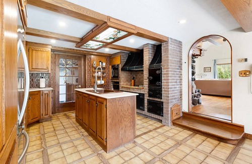 Our Estate is a paradise for larger groups and extended families. Main house offers large kitchen, living area with pool table, large dining room and a Hot Tub with majestic lake view. Several sofas will comfortably accommodate large group in the living room and gather families around majestic fireplace. Unique features: private waterfall and private trail around the lake ( not maintained - use at your own risk)
