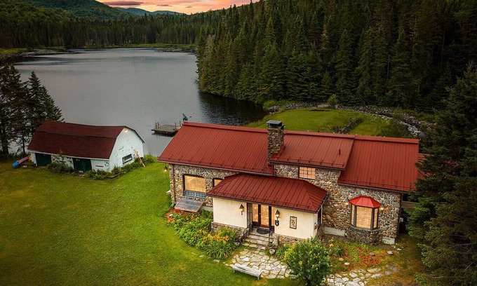 Chalet Le Chateau with Guest House on the lake, waterfall, SPA, BBQ, pool table | House in Val-des-Lacs