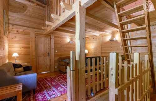 Gite on 3 levels comprising on the ground floor (access by a covered external staircase from the carport, shared by the 2 gites): a kitchen, 1 bedroom (1 double bed 140x190 cm), a bathroom (shower and WC). 1st floor: 2 bedrooms (1 single bed 90x190, 1 single bunk bed with low ceiling height / 1 single bed 90x190 cm, 1 double bed 140x190 cm) with private shower/sink, a living room (television) with an integrated mezzanine in the eaves (access by a ladder - 1 double bed 140x190 cm). Total floor area: 110 m² including the attic areas. Country chalet located in a hamlet on a slope, surrounded by meadows and forests. The chalet comprises two adjoining gîtes and a holiday studio for the owners on the ground floor. A spacious terrace is shared with the adjoining gîte, and there is one private covered parking space. Shared grounds. Shops are located in Arêches, 800 m away, and in Beaufort, 6 km away.