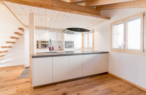 Built originally as a barn in the 19th century, the chalet is full of original features and boasts a unique setting with a terraced garden and neighbouring barn. The duplex penthouse has been sympathetically renovated with a real granite slate roof and natural wooden floors.