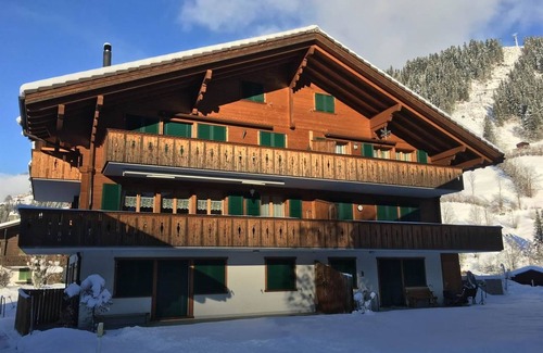 90 m2. More information by the provider: The appartement lies in a modern chalet with 6 appartments. It is situated near the cablecar Metsch. There are lot of comfort facilities: basement garage, visitors parking, room to keep skis, heated skiboots holder, elevator, W-Lan. In just 1 minute the guests can reach the skiarea Adelboden-Lenk.