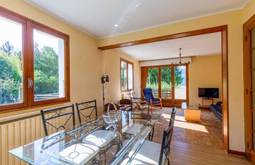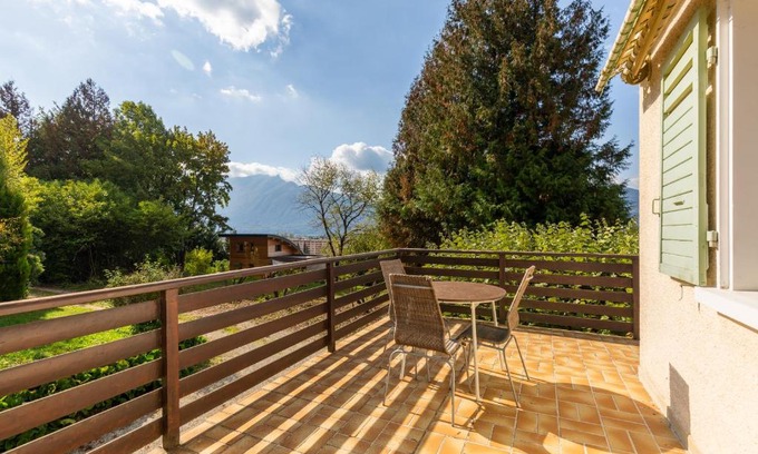 Chalet Les Tourelles offers accommodations in Aix-les-Bains, 3.7 miles from Bourget Lake and 13 miles from SavoiExpo. The property is around 14 miles from Fountain of Elephants, 1.5 miles from Congress Centre, and 14 miles from Chambéry Train Station. The property features barbecue facilities and outdoor furniture. Offering direct access to a balcony with lake views, the spacious chalet consists of 3 bedrooms. Featuring a terrace with mountain views, this chalet also includes a TV, a well-equipped kitchen with a dishwasher, an oven, and a toaster, as well as 1 bathroom with a shower and a hair dryer. For added privacy, the accommodation features a private entrance. Guests at the chalet can enjoy hiking nearby, or make the most of the garden. Chateau des Ducs de Savoie is 15 miles from Chalet Les Tourelles, while Abbaye d'Hautecombe is 16 miles from the property. Chambéry-Savoie Airport is 5.6 miles away.