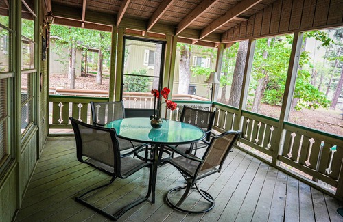 This guest favorite is right on the water! Enjoy unwinding and relaxing on your own personal screened in porch listening the sounds of nature with some fresh country air or get out and explore all the amenities right on site. Throw a line in our 12 acre Lake Innsbruck or take the john boat out. You also have access to putt putt golf, recreational center, swimming pool, basketball, tennis court, shuffleboard and so much more. Within a few miles to the area's top attractions such as Callaway Gardens, Pine Mountain Wild Animal Safari, and FDR State Park just to name a few.