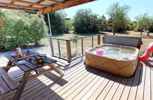 Chalet Luberon - 35m² - 2 bedrooms + jacuzzi (4 adults & 1 child max 12 years) 4 to 5 people - 4 people included in the price is located in Lourmarin. Chalet Luberon - 35m² - 2 bedrooms + jacuzzi (4 adults & 1 child max 12 years) 4 to 5 people - 4 people included in the price provides accommodation, featuring TV, Balcony/Terrace, Security/Safety, among other amenities. This Ski Chalet features TV, Balcony/Terrace, Security/Safety, to make your stay a comfortable one.