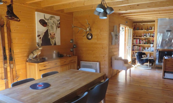 Très beau chalet d'environ 100m², avec terrasse et jardin à environ 1.4 kms du village sur la route de Villard de Lans. WIFI. Au rdch : séjour de plain-pied, exposé sud, cheminée avec bois fourni : cuisine américaine avec LV, plaques vitro, micro-ondes, LL, grand frigo/congel, cafetière, Nespresso, grille-pain, appareils raclette et fondue. wc. A l'étage : 1 chambre avec 1 lit en 140 avec salle de bains. 1 alcove avec grand dressing. 2 chambres avec chacune 1 lit en 140. Salle de bains et wc séparés. Revêtement sol : parquet vitrifié Garage pour rangement skis, vélos. Stationnement devant la maison. Literie : 3 grandes et 2 petites couettes, 10 oreillers. Jardin : L'été : table , chaises, fauteuils, chaises longues et barbecue à charbon de bois. POUR DES RAISONS D'ALLERGIES, ANIMAUX NON ADMIS. COUCHAGE MAXIMUM : 6 personnes. (il est interdit de dépasser ce nombre de personnes) Meublé de Tourisme Classé: 4 étoiles Optional services to be paid on site and to be booked before your arrival: High chair : 10.0 €. Baby cot : 10.0 €. sheets 90 : 13.0 €. duvet 90 : 13.0 €. sheets 140 : 13.0 €. duvet 140 : 13.0 €. sheets 160 : 13.0 €. Towel : 4.0 €. Bath mats : 3.0 €. Unless stated, services such as cleaning, bed linen, towels etc. are not included in the price of this rental. If pets are allowed (information in the advertisement), charges may be applicable. Only equipment mentioned in this advertisement are present. Equipment not mentioned are not considered to be present.