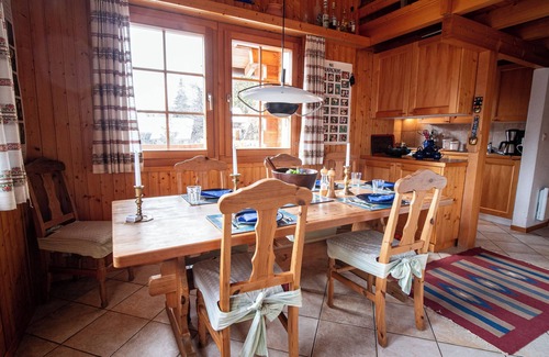 This detached chalet, situated on the top road in Grimentz, boasts stunning views over the village and the surrounding area. It is very close to the navette (free) bus stop in winter, giving easy access to the pistes, and under the right snow conditions, it is possible to ski back to close to the chalet (by turning off from the Itinerary Grimentz - St Jean run). It benefits from a very private, secluded garden / terrace.. It is a cosy, traditional Swiss alpine chalet with the living / dining area upstairs and three bedrooms on the lower floor, with two bathrooms.
