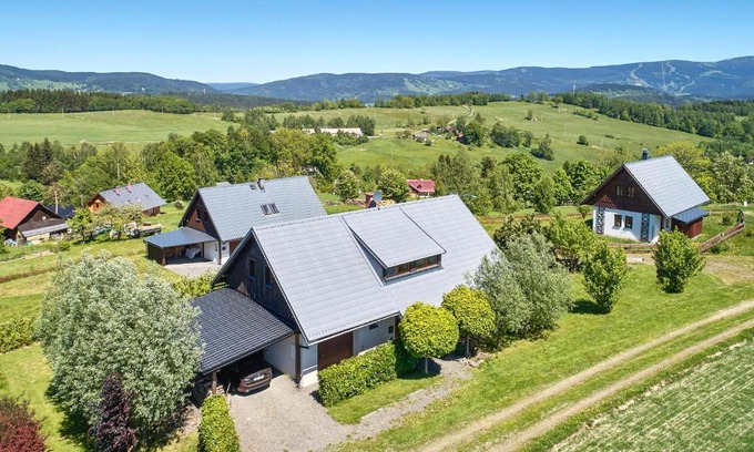 Offering a garden, Chalet Nikola provides accommodations in Vysoké nad Jizerou. Both free Wifi and parking on-site are available at the chalet free of charge. On clear days, guests can head outside to enjoy the chalet's outdoor fireplace. The chalet consists of 2 bedrooms, 2 living rooms, a fully equipped kitchen with a dishwasher and a coffee machine, and 1 bathroom with a hot tub and a hair dryer. Guests can take in the views of the mountain from the terrace, which also has outdoor furniture. There's also a seating area and a fireplace. During warmer months, you can make use of the barbecue facilities and eat on the private patio. For guests with children, Chalet Nikola offers an indoor play area. If you like to discover the area, skiing, cycling and hiking are possible in the surroundings and the accommodation can arrange a bicycle rental service. Bus Stop Strážné is 17 miles from Chalet Nikola, while Szklarki Waterfall is 18 miles from the property. Pardubice Airport is 63 miles away, and the property offers a paid airport shuttle service.