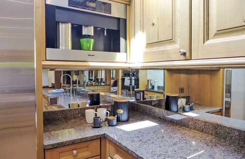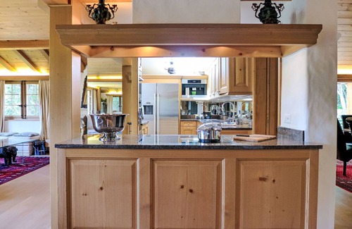 7-room chalet 280 m2 on 3 levels. Spacious and bright, very comfortable and tasteful furnishings: open large living room with open-hearth fireplace. Exit to the balcony. Open dining room with dining table. Exit to the terrace. 1 room with 1 double bed (160 cm, length 200 cm). 1 room with 1 french bed (140 cm, length 200 cm). Large, open kitchen (oven, dishwasher, 4 induction hot plates, toaster, kettle, microwave, freezer, electric coffee machine, steamer, raclette grill, cooking island, fondue Set (cheese)). Shower/WC. On the lower ground floor: 1 large room with Dressing room with 1 double bed (160 cm, length 200 cm), shower/WC and TV. Exit to the garden. 1 room with 1 double bed (160 cm, length 200 cm), bath/WC and TV. Exit to the garden. 1 small room, without window with 1 french bed (140 cm, length 200 cm), shower/WC and TV. Top floor: open gallery. 1 large room with Dressing room with 1 double bed (160 cm, length 200 cm), bath/shower/WC and TV. Exit to the balcony. Large terrace, patio. Terrace furniture. Marvellous panoramic view of the mountains, the ski run and the countryside. Facilities: washing machine, dryer, iron, hair dryer, logs (extra). Internet (WiFi, free). Please note: non-smoking house. Maximum 1 pet/ dog allowed. Smoke alarm, fire extinguisher. When there are less than the maximum number of guests staying at the property, not all of the housing units will be available for use.