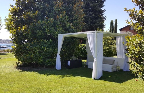 It is located in Residence Villalsole, directly on the lake with a private beach. Chalet Rio has a small private garden, with 1 bedroom, bathroom with shower cabin, living room with couch bed for 2 persons, kitchen fully equipped with coffee machine and dishwasher. Air conditioning, free Wifi. At our guests disposal bicycles, canoes, sup, table tennis. Restaurant inside the area. Dogs are welcome!