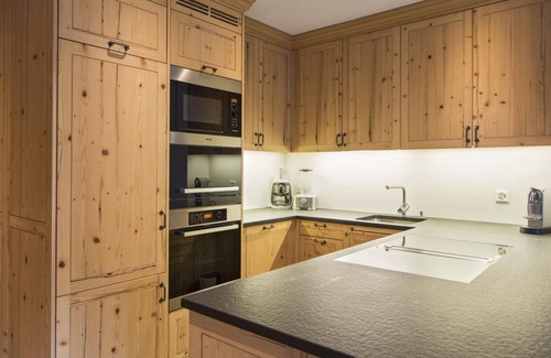 The apartment is on the ground-floor of the Chalet, it offers fully equipped kitchen with professional facilities (Steamer, microwave, oven, Electric-hob, dishwasher, freezer, fridge, Nespresso Coffee Machine, Electric water kettle, Filter coffee machine, Tea maker, kitchen machine, blender and wine cooler)