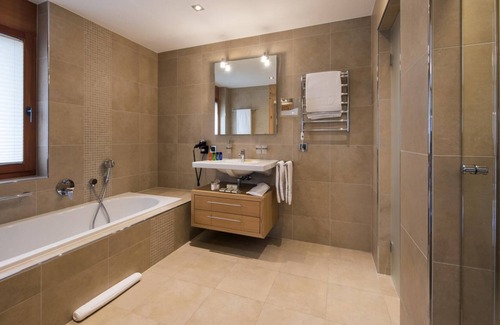 The apartment is on the 1st and 2nd floor of the Chalet and accessible by lift or stairs. On the top floor there is a big fully equipped kitchen with professional facilities (Steamer, plate warmer, microwave, oven, grill-cooking plate, Electric-hob, dishwasher, freezer, fridge, Nespresso Coffee machine, Electric water kettle, Kitchen machine, Blender, Tea maker, Filter coffee machine and wine cooler)