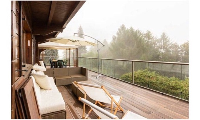 Beau chalet suisse traditionnel donnant sur une forêt privée avec une vue imprenable sur les montagnes de la vallée du Rhône, incroyable piège solaire même en plein hiver. Immense terrasse ensoleillée exposée au sud. Stationnement hors route pour plusieurs voitures.
