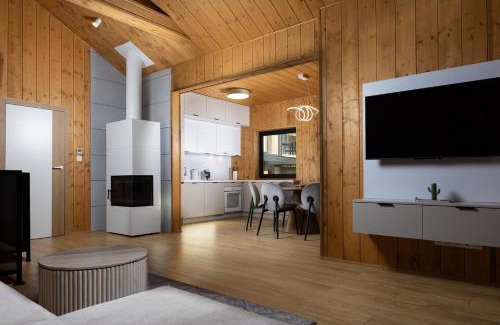 7.5 miles from Dobsinska Ice Cave in Telgárt, Chalet VLOčKA - Chalet Snowflake provides accommodations with access to a sauna. This property offers access to a balcony, free private parking, and free Wifi. Guests can use a garden. Providing a terrace and mountain views, the vacation home includes 2 bedrooms, a living room, satellite flat-screen TV, an equipped kitchen, and 2 bathrooms with a walk-in shower. Guests can enjoy an ambient stay in their soundproof room with parquet floors and a fireplace. The property has an outdoor dining area. Muran is 12 miles from the vacation home. Poprad-Tatry Airport is 23 miles away.