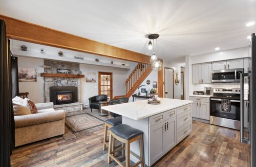 The spacious living room is the perfect spot to relax after exploring the Poconos. Sit back on the plush sofa and cozy up with a good book while the warmth from the fireplace fills the room. Large windows let in plenty of natural light and fresh air.